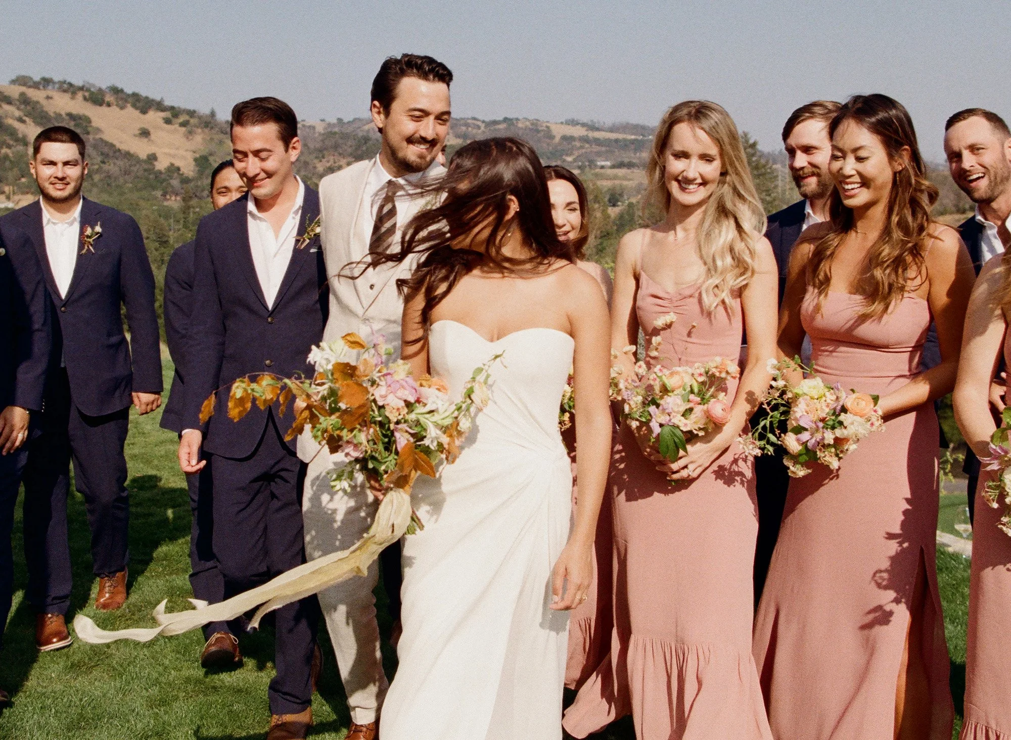 This wedding was pure wine country magic - dusty rose bridesmaids dresses that somehow matched the sunset perfectly, groomsmen loosening their ties before cocktail hour even started, and that golden light that Sonoma just does better than anywhere else.